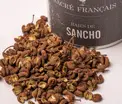 Faisant partie de la même famille que le poivre de Sichuan vert de Chine, la baie de Sancho est probablement le faux-poivre le plus délicat. Elle offre une saveur unique qui procure une sensation de chaleur, similaire à celle d'un piment frais, mais sans le piquant. Utilisée fraîche ou en poudre, elle rehausse les bouillons, soupes de pâtes et sauces, et s'avère délicieuse sur des poissons grillés. Elle est également un ingrédient clé du mélange traditionnel de 7 épices appelé «Shichimi». Ses délicates senteurs d'agrumes, accompagnées de notes de feuilles de mandarine, s'accordent parfaitement avec des préparations sucrées-salées, qu'il s'agisse de poisson, de langouste, de volaille pochée, de salade de fruits exotiques ou même d'un moelleux au chocolat.